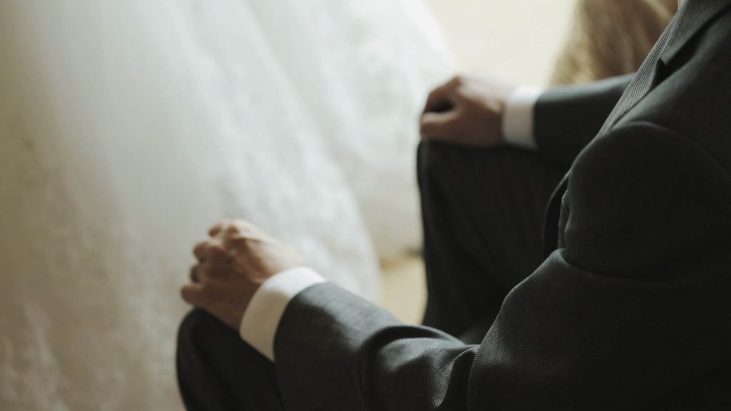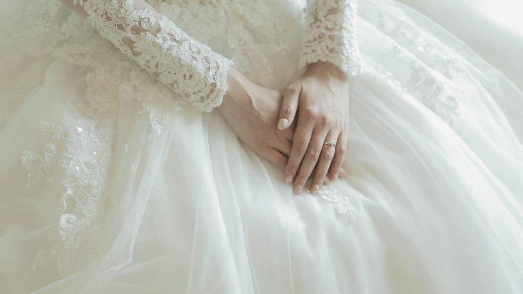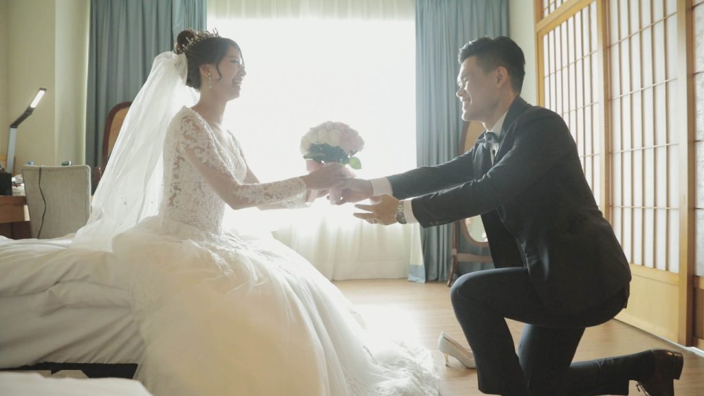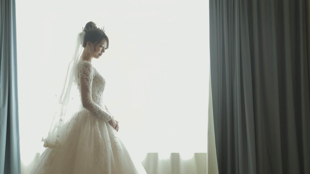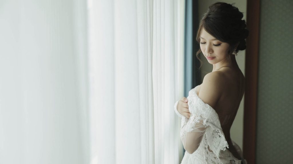 陽光灑進日式榻榻米房間,將白紗映照,更顯得神聖純潔,