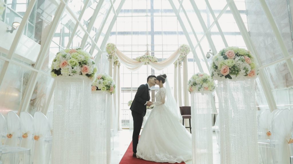 文定儀式是在飯店的水晶玻璃教堂進行,