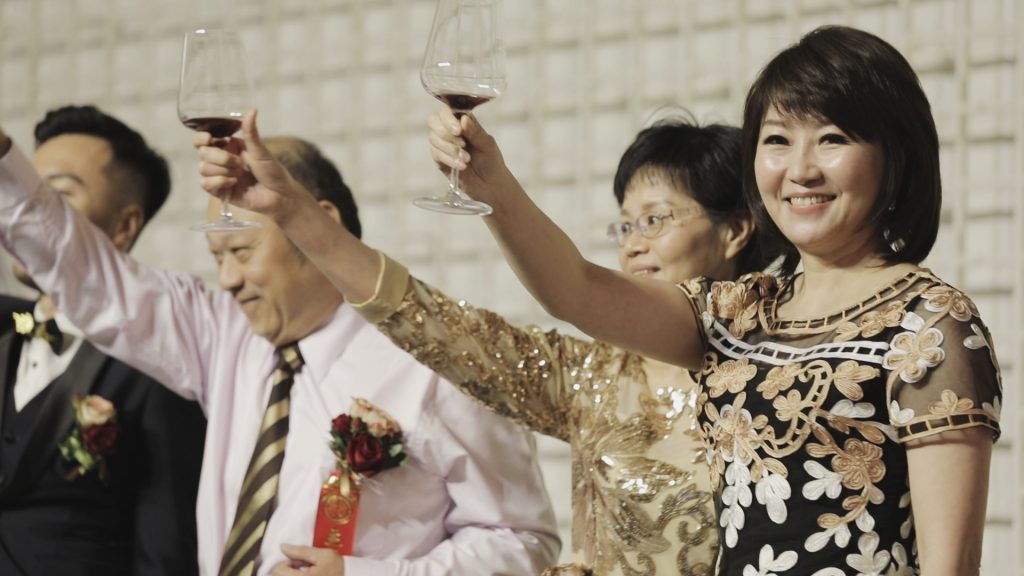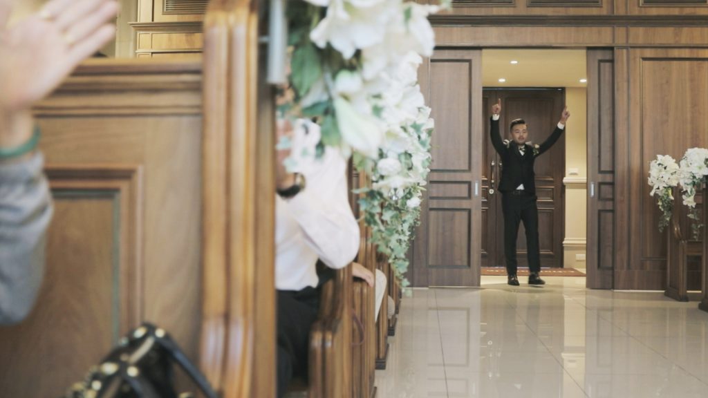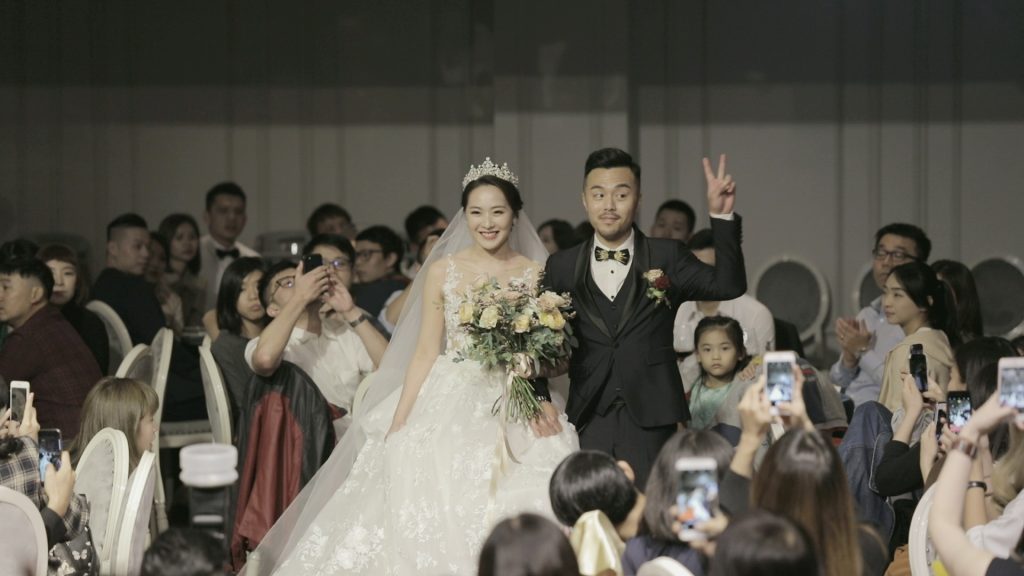 一次進場男女雙方主婚人也很大方的與賓客招手互動,