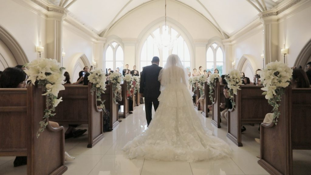 爸爸牽著Echo進場的那一刻白紗模樣揭曉,